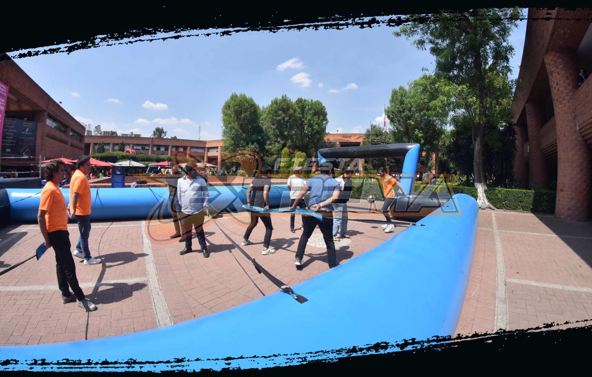 Este juego es el ideal para involucrar a grandes multitudes en eventos. La cancha de futbol inflable permite una gran variedad de actividades como Bubble Soccer y el Inflable Futbolito Humano, que es posiblemente una de las actividades de integración de equipos de trabajo más efectiva para hacer que las personas trabajen en conjunto. El juego toma el futbolito convencional y lo hace de tamaño real. Los jugadores tendrán que trabajar juntos, moviéndose uno al lado del otro de forma cooperativa para patear el balón de fútbol, ​​lo que lo convierte en una excelente actividad de integración de equipos de trabajo para los empleados. El inflable futbolito humano en una cancha de futbol inflable es un juego imperdible para una fiesta de cumpleaños, eventos escolares, bodas o eventos empresariales. ¿Buscas otras versiones de juegos gigantes? Tenemos una amplia variedad de actividades para eventos al aire libre y bajo techo disponible como servicio de renta a través de nuestro catálogo. Si alguna vez has querido agregar un factor sorpresa a una fiesta de cumpleaños, un team building, una celebración de un club de fútbol o una actividad vacacional, en nuestra gama de renta de inflables habrá un juego que se ajuste a tu presupuesto. El objetivo de nuestros inflables consiste en reducir el estrés de usted y sus invitados para disfrutar el momento y divertirse.